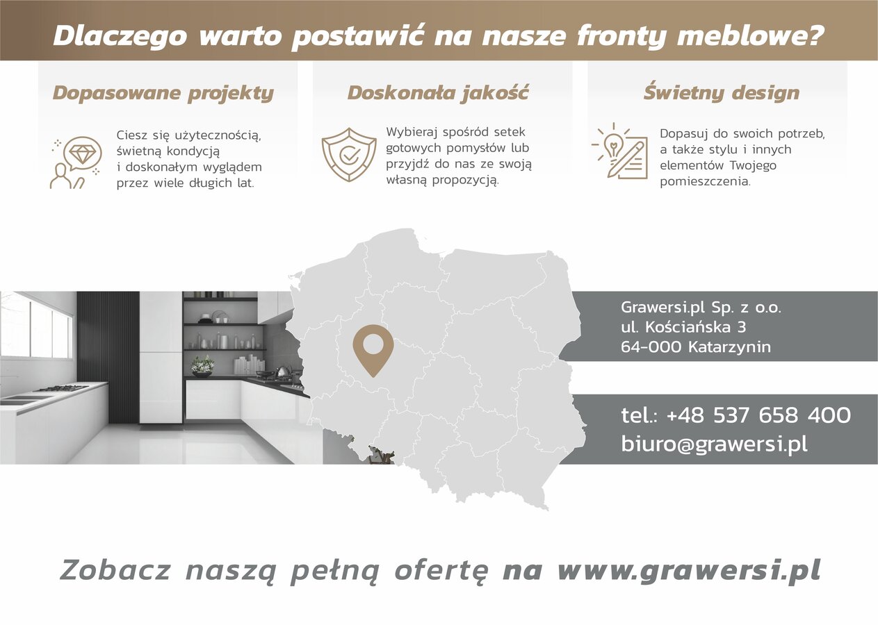 Odmieniamy wnętrza, czyniąc je bardziej funkcjonalnymi, pięknymi i stylowymi. Produkujemy fronty lakierowane frezowane i gładkie - dostępne w niezliczonej ilości wariantów.