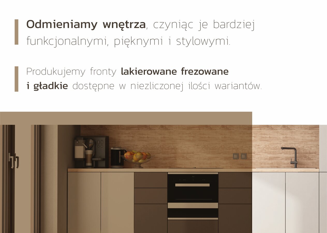 Odmieniamy wnętrza, czyniąc je bardziej funkcjonalnymi, pięknymi i stylowymi. Produkujemy fronty lakierowane frezowane i gładkie - dostępne w niezliczonej ilości wariantów.